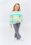 Miękki i przyjemny w dotyku sweter dla małej dziewczynki, wykonany w 100% z naturalnej bawełny. Kolorowy wzór w pastelowe fale sprawia, że ten model to idealny wybór na wiosnę, lato i chłodniejsze dni. Sweterek jest lekki i przewiewny, dzięki czemu zapewnia dziecku komfort noszenia przez cały dzień. Świetnie komponuje się zarówno z jeansami, jak i spódniczką. Idealny do codziennych zabaw i spacerów.