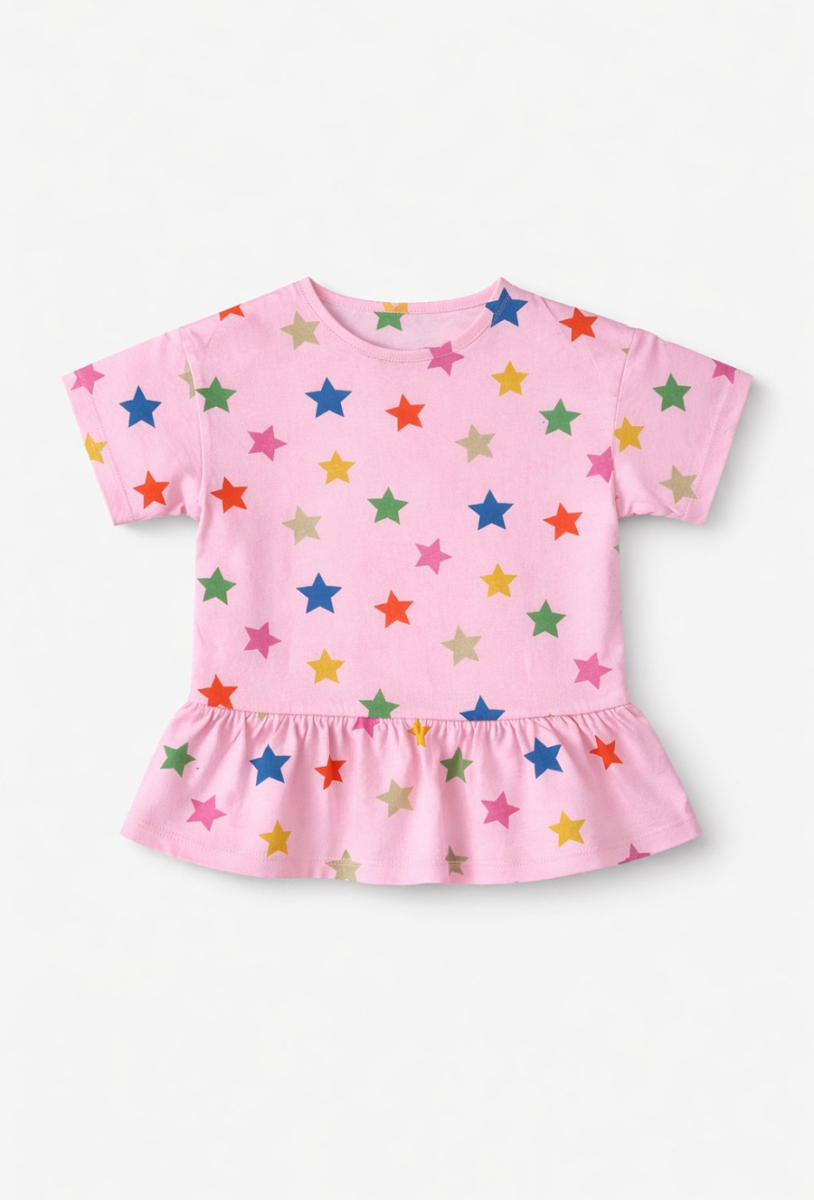 Koszulka dla dziewczynki w gwiazdki z falbanką