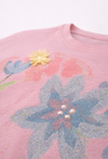Koszulka dziewczęca kwiatowy nadruk z brokatem i perełkami