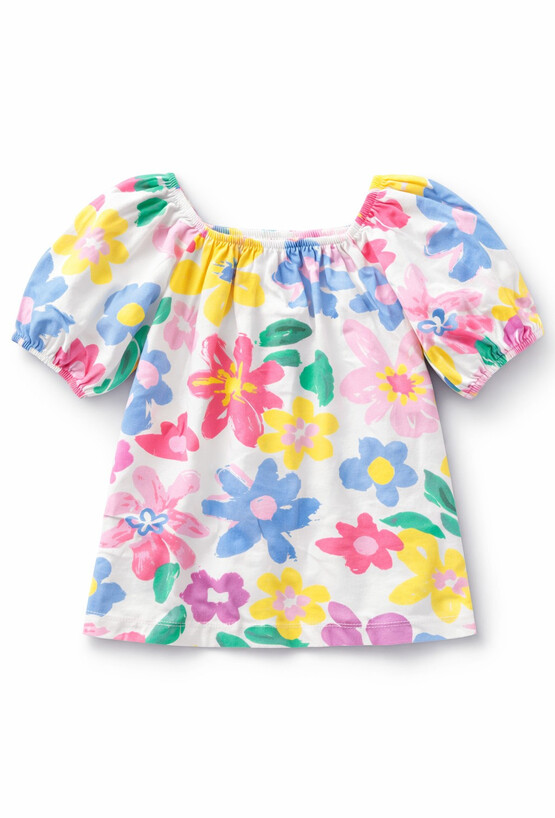 Ta biała koszulka to idealny wybór dla małych miłośniczek kolorów i radosnych wzorów. Została zaprojektowana z myślą o letnich dniach, łącząc modny wygląd z wyjątkowym komfortem noszenia. Koszulka została wykonana z, przewiewnej bawełny, co czyni ją idealną na upalne dni. Świetnie komponuje się zarówno z klasycznymi szortami, jak i kolorowymi kulotami z tej samej linii wzorniczej.