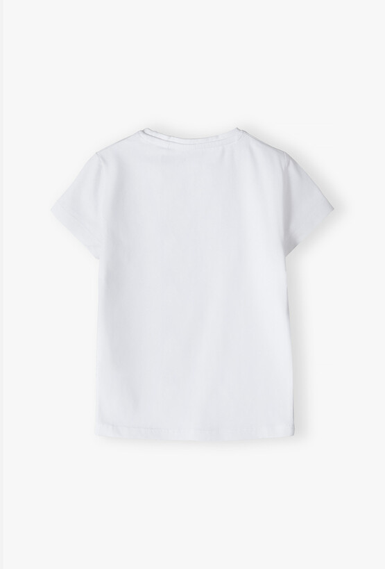 Klasyka w sportowym wydaniu! Ta śnieżnobiała koszulka to niezbędny element wyposażenia każdego małego sportowca. Zaprojektowana z myślą o maksymalnej wygodzie, sprawdzi się doskonale podczas lekcji WF-u, zajęć dodatkowych czy weekendowych szaleństw na placu zabaw. Klasyczny krój z krótkim rękawem zapewnia pełny zakres ruchów ramion, nie krępując dziecka podczas biegania, skakania czy gimnastyki. Okrągłe wycięcie pod szyją wykończone elastycznym ściągaczem ułatwia szybkie przebieranie się w szatni i nie powoduje ucisku. Biała koszulka sportowa to praktyczny wybór, który gwarantuje dziecku świeżość i komfort, pozwalając mu skupić się na tym, co najważniejsze – na dobrej zabawie i sporcie.