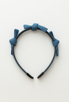 Niebieska opaska z kokardkami dla dziewczynki to dodatek, który doda uroku każdej stylizacji. Trzy delikatne kokardki rozmieszczone na całej długości opaski nadają jej dziewczęcego charakteru. Wykonana z trwałych materiałów, gwarantuje wygodę noszenia i stabilne utrzymanie na głowie. Doskonała na co dzień, do szkoły, a także na wyjątkowe okazje.