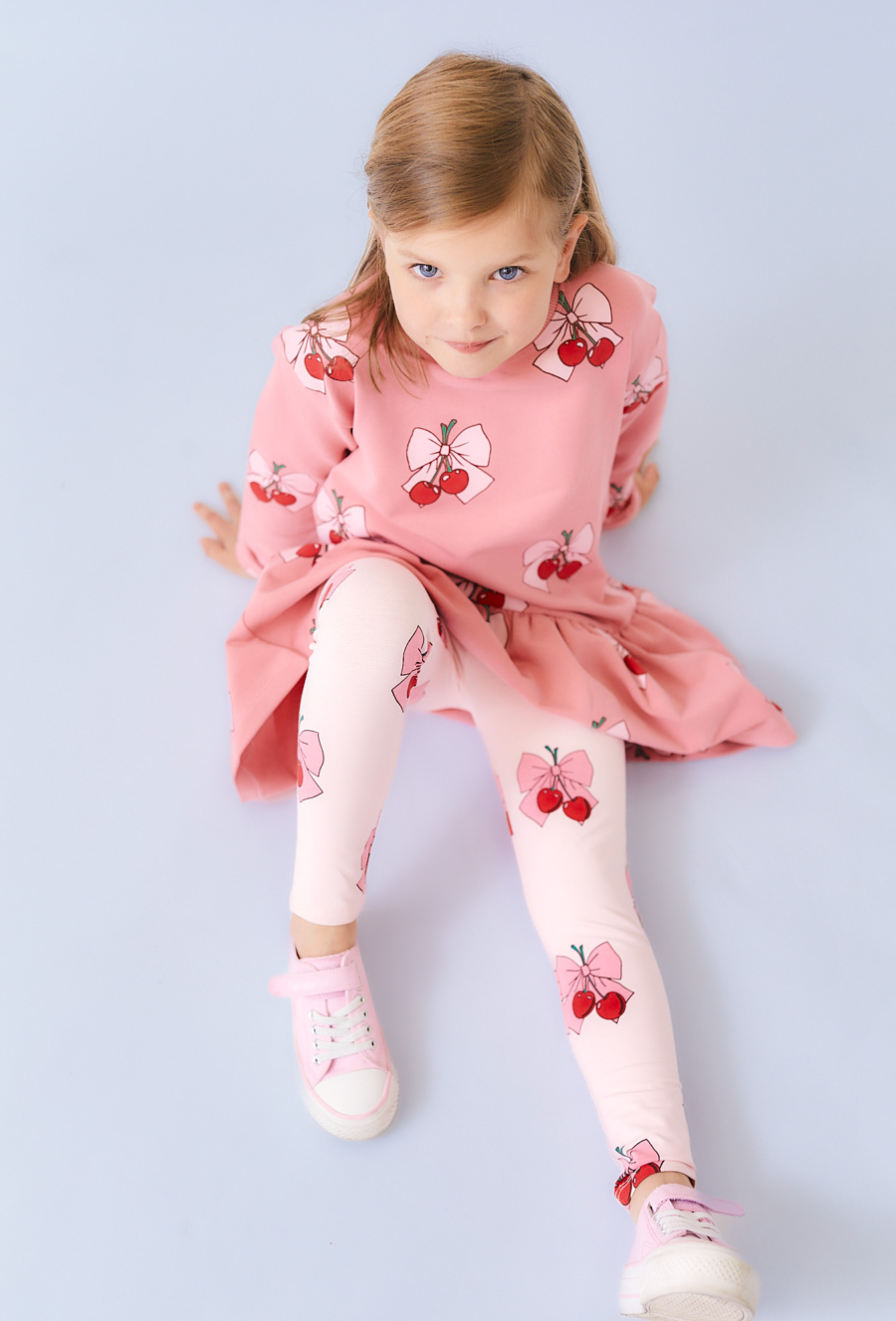 Różowe legginsy z kokardkami i wisienkami – Limited Edition