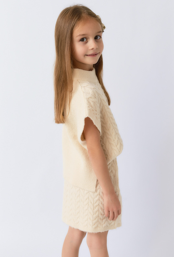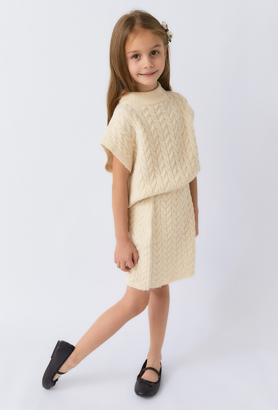 Spódnica dziewczęca swetrowa – ecru z warkoczowym splotem
