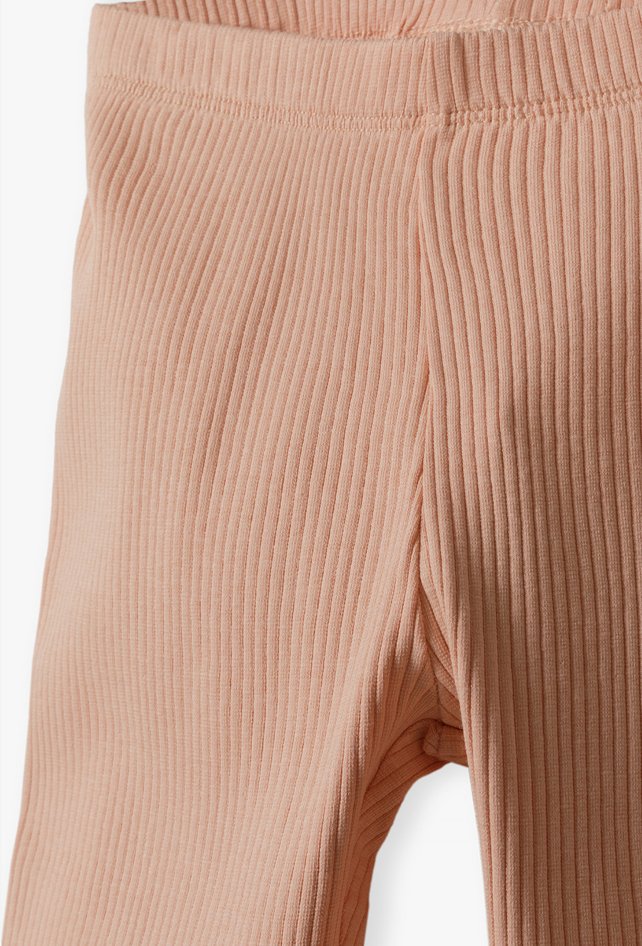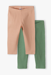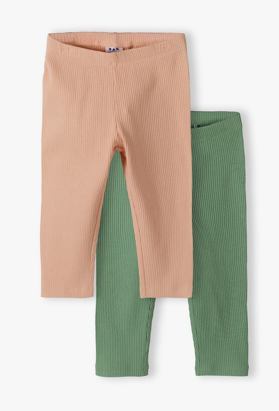 Uzupełnij szafę swojej córeczki o stylowy i praktyczny zestaw! Te prążkowane legginsy to idealne połączenie modnego wyglądu z wygodą, której potrzebuje każda mała dziewczynka podczas aktywnego dnia w przedszkolu, na placu zabaw czy w domu. Komplet zawiera dwie pary legginsów w najmodniejszych odcieniach: jasnej brzoskwini oraz spokojnej szałwiowej zieleni. To uniwersalne barwy, które łatwo dopasować do wielu T-shirtów i bluz. Prosty krój z długimi nogawkami sprawia, że legginsy są bardzo funkcjonalne – świetnie wyglądają zarówno solo, jak i jako warstwa pod spódniczkę czy dłuższą bluzę typu oversize.