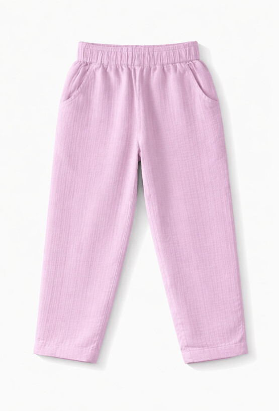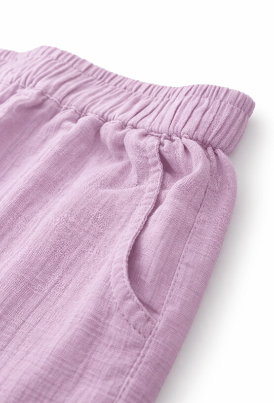Lekkie, przewiewne i stworzone na ciepłe dni! Różowe haremki barrel 51015 uszyte z miękkiego muślinu (100% bawełna) zapewniają komfort przez cały dzień. Luźniejszy krój typu barrel/haremki daje swobodę ruchów, a elastyczna gumka w pasie sprawia, że spodnie łatwo się zakłada i dobrze dopasowują do sylwetki. Model posiada praktyczne kieszenie (w tym tylna kieszonka), dzięki czemu świetnie sprawdzi się w codziennych stylizacjach – do t-shirtu, topu czy koszuli.