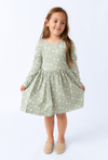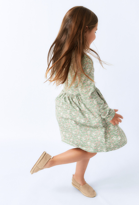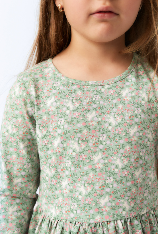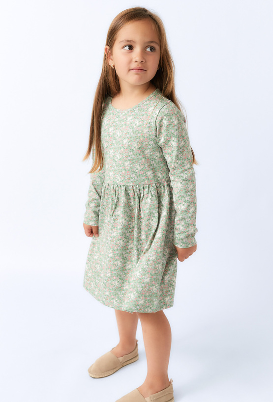 Sukienka dziewczęca z długim rękawem – zielona w kwiatki