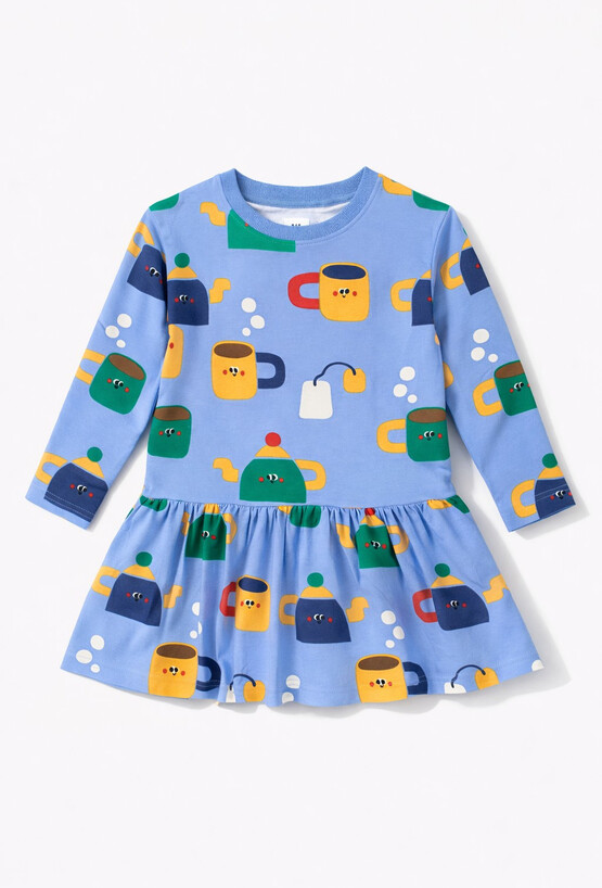 Sukienka dziewczęca z długim rękawem w motyw herbatki