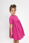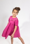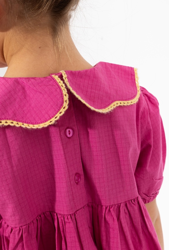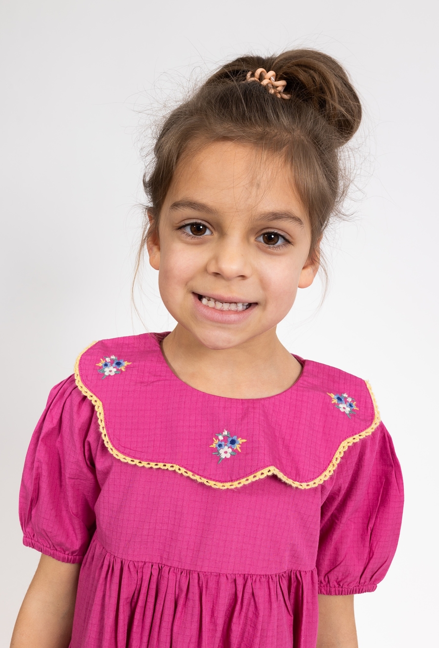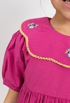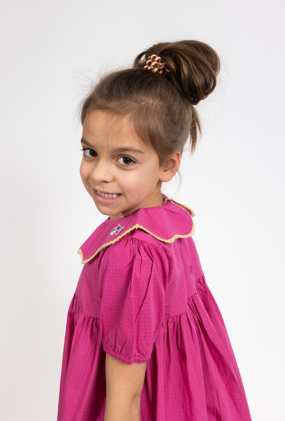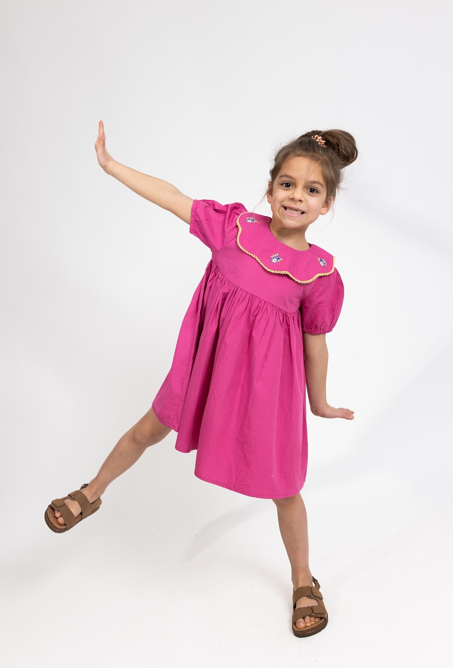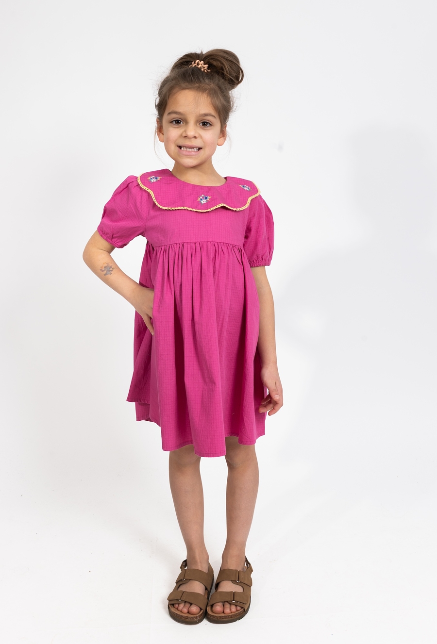 Elegancka i jednocześnie wygodna różowa sukienka 51015 z krótkim rękawem to idealna propozycja na wyjątkowe okazje i na co dzień. Uszyta z 100% bawełny ze strukturalnej tkaniny z tłoczoną krateczką, pięknie się układa i jest przyjemna dla skóry. Uwagę przyciąga dekoracyjny kołnierzyk z kontrastowym wykończeniem oraz hafty w kwiatuszki, które dodają całości wyjątkowego uroku. Z tyłu znajduje się guziczek, ułatwiający zakładanie.