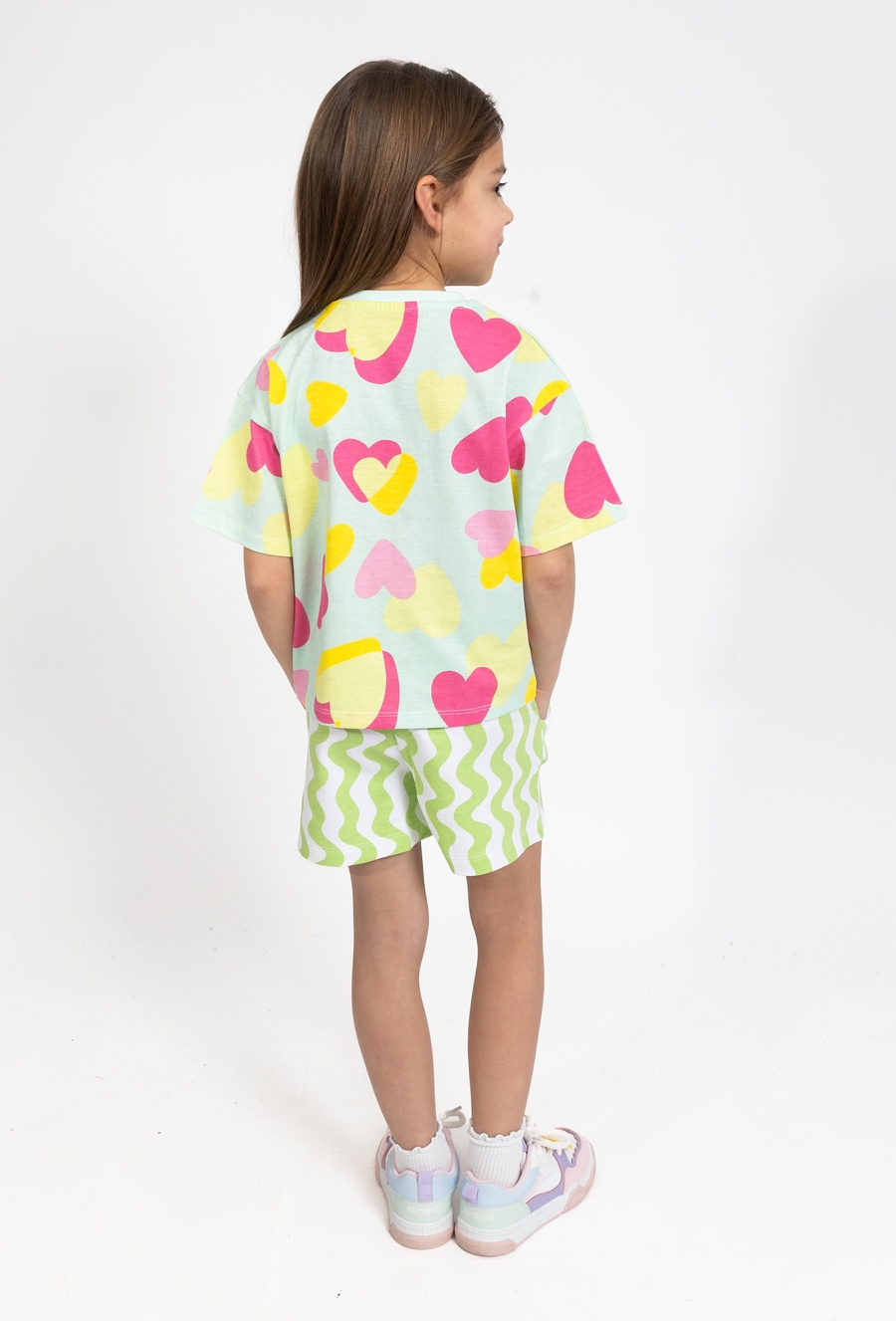 Szukasz idealnych spodenek na lato? Te zielone szorty to doskonały wybór dla każdej aktywnej dziewczynki, zapewniający pełną swobodę ruchów podczas zabawy. Model wyróżnia się radosnym, wakacyjnym stylem dzięki nadrukowi w paski, który pokrywa całą powierzchnię materiału. Lekki fason sprawia, że szorty są niezwykle przewiewne i komfortowe nawet w upalne dni. To uniwersalna propozycja, która świetnie komponuje się z różnymi t-shirtami, tworząc gotową, letnią stylizację na każdą okazję – od placu zabaw po rodzinne spacery.