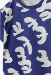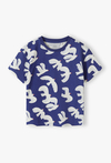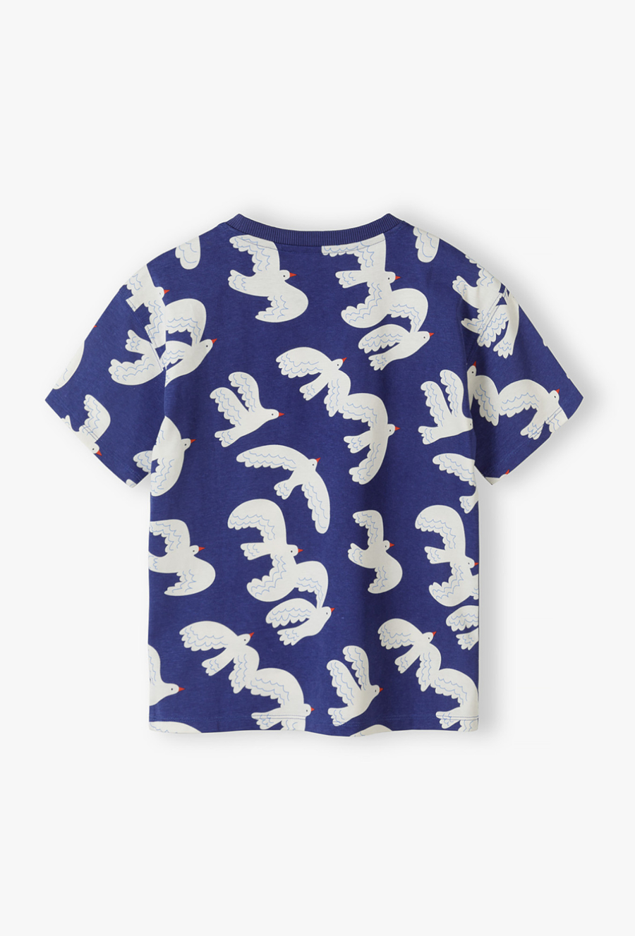 Pozwól wyobraźni Twojego dziecka wzbić się wysoko! Ten niebieski T-shirt z radosnym motywem białych ptaków to idealne połączenie artystycznego designu z codziennym komfortem. Dzięki wyrazistemu wzorowi, koszulka ta stanie się ulubionym elementem garderoby do przedszkola, na plac zabaw czy wakacyjne wycieczki. Cała powierzchnia koszulki pokryta jest nadrukiem białych ptaków w locie z subtelnymi, pomarańczowymi detalami. To wzór, który nadaje stylizacji lekkości i wyróżnia dziecko z tłumu. Krótkie rękawy o klasycznym wykończeniu sprawiają, że T-shirt świetnie układa się na sylwetce. Koszulka w ptaki tworzy doskonały duet z białymi szortami lub dżinsową spódniczką.