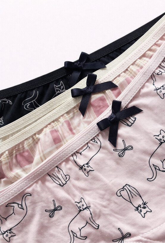 Komfort na co dzień w uroczym wydaniu! Zestaw 3 par majtek dziewczęcych wykonanych w 100% z bawełny. Miękki materiał jest przyjemny dla skóry, a klasyczny krój zapewnia swobodę ruchu i dobre dopasowanie. Każda para ma delikatną kokardkę z przodu oraz różne, dziewczęce wzory w pastelowej kolorystyce.
