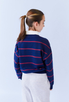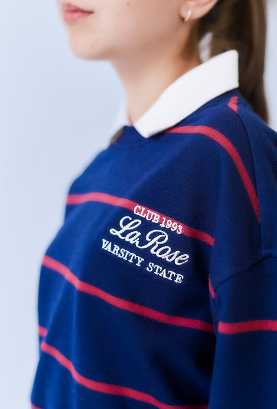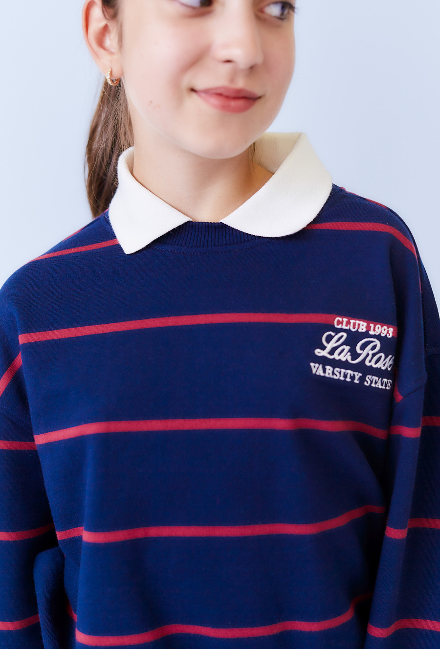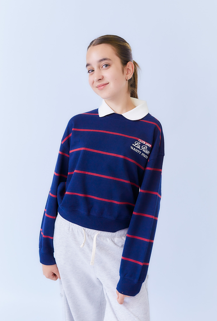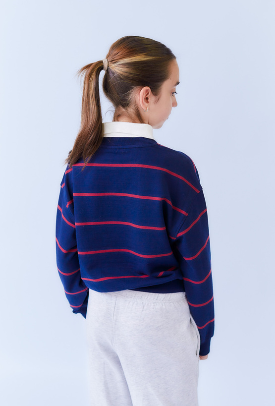 Bluza dziewczęca w paski z kołnierzykiem i haftem
