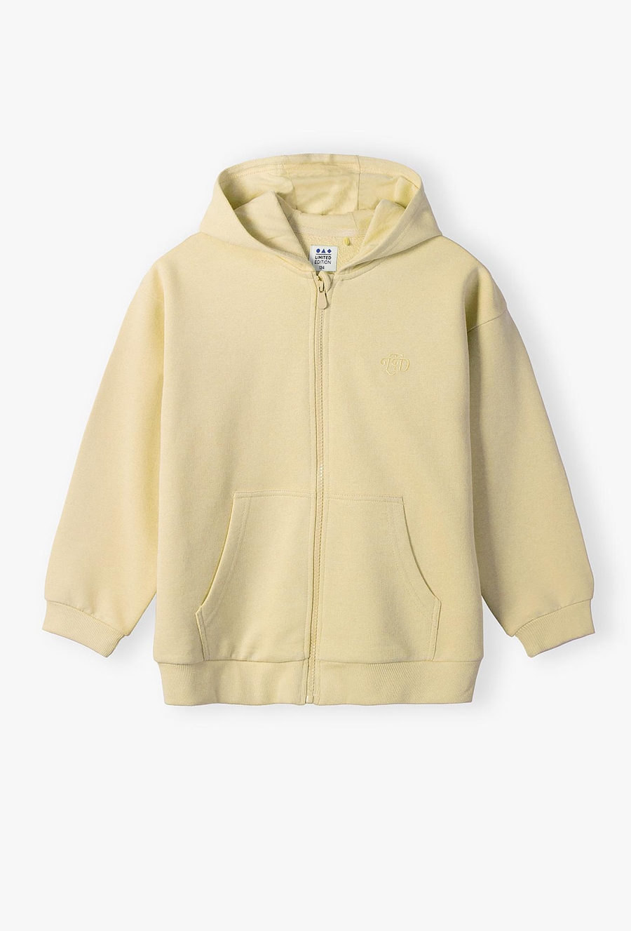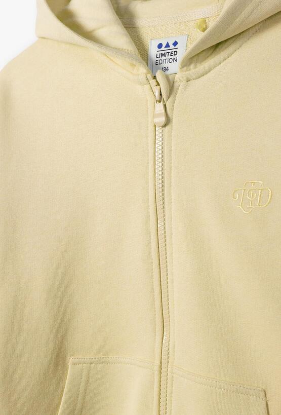 Dodaj energii codziennym stylizacjom swojej córki! Ta żółta bluza z kapturem to idealne połączenie sportowego luzu i funkcjonalności. Dzięki optymistycznej kolorystyce i klasycznemu krojowi, stanie się ona ulubionym elementem garderoby do szkoły, na spacer czy weekendowy wyjazd. Solidny suwak na całej długości ułatwia szybkie zakładanie i zdejmowanie bluzy, co jest niezwykle wygodne przy zmiennej pogodzie. Rękawy oraz dół bluzy zakończone są elastycznymi, prążkowanymi ściągaczami, które zapobiegają podwijaniu się materiału i utrzymują odpowiedni fason. Ta żółta bluza to doskonała baza do tworzenia warstwowych zestawów – świetnie wygląda narzucona na białą koszulę lub T-shirt w paski.