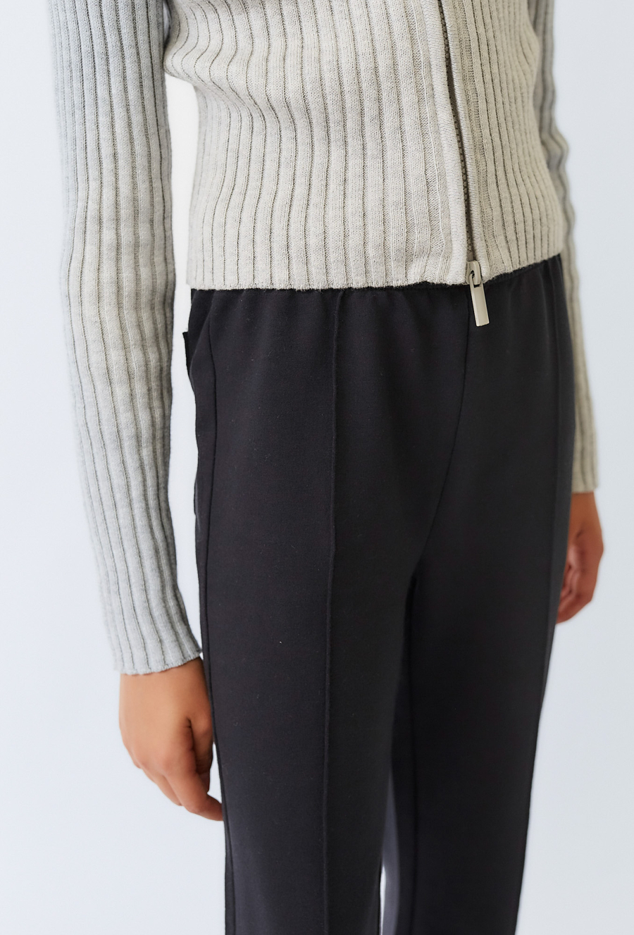 Czarne spodnie flare dziewczęce – cieplejszy model.
