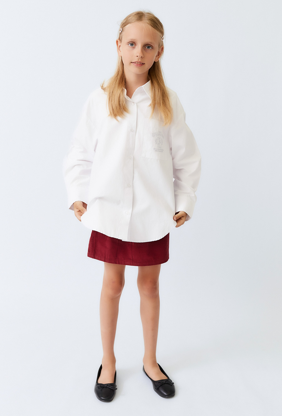 Biała koszula dziewczęca z haftami i zakładkami