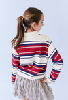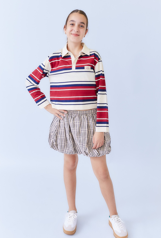 Czerwone dziewczęce polo w paski z długim rękawem