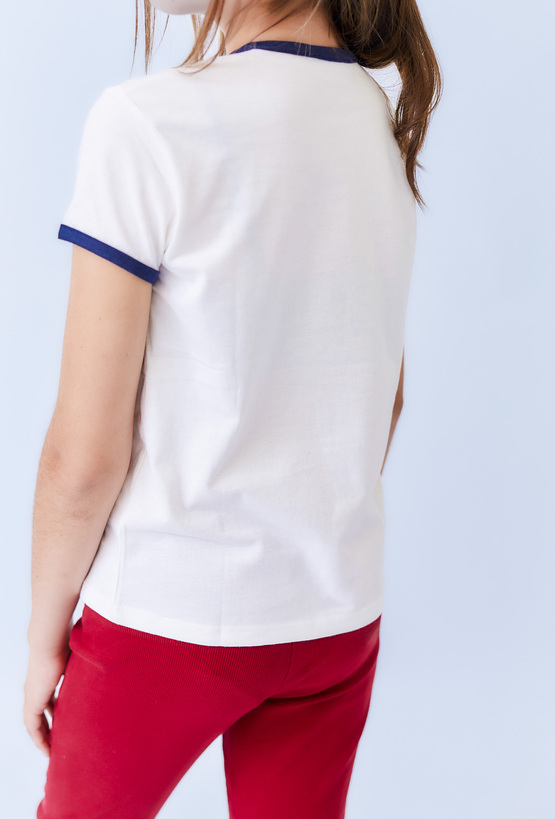 Dziewczęcy sweter kardigan w paski ecru – 100% bawełna