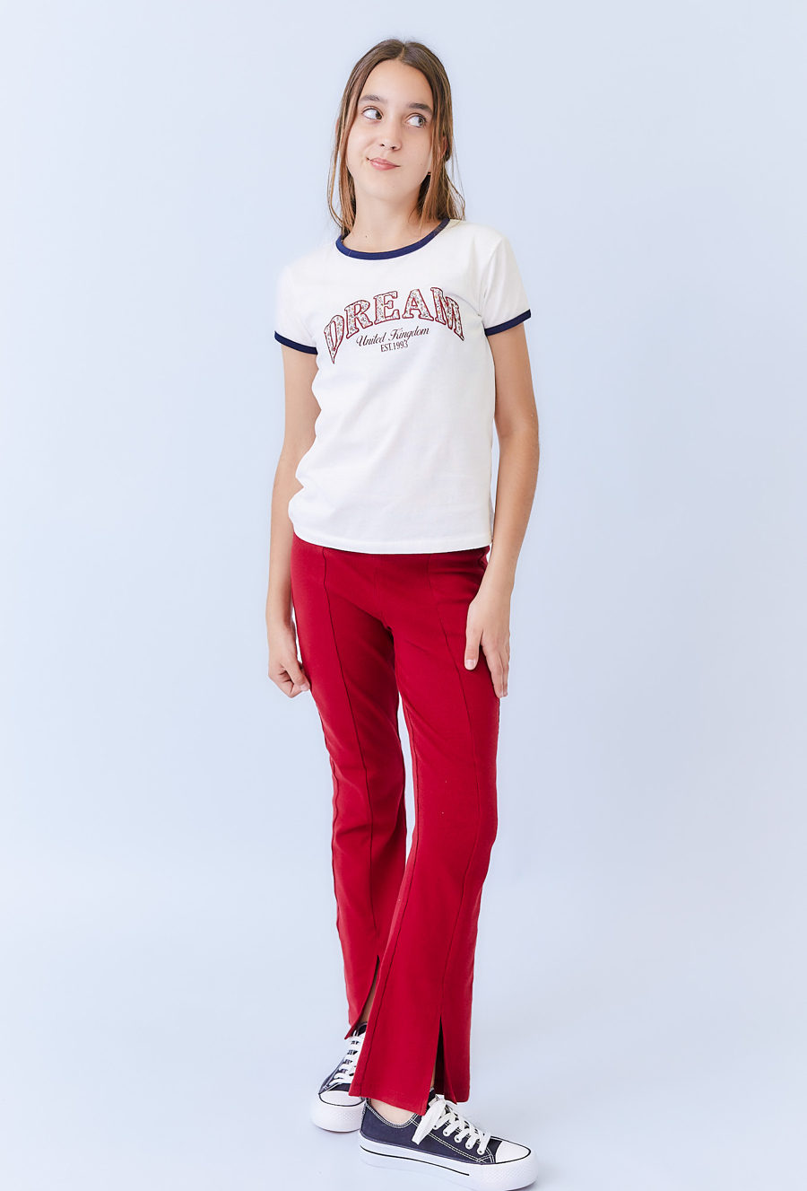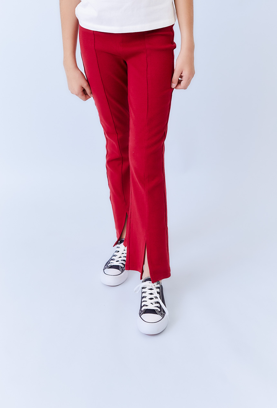 Czerwone legginsy dziewczęce flare z rozcięciami