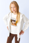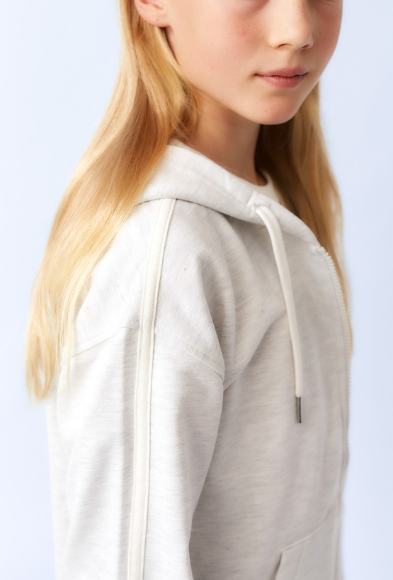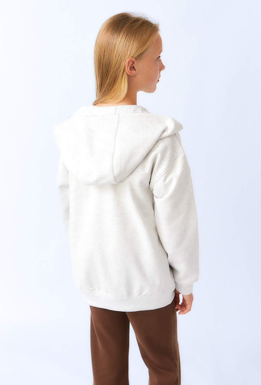 Wygodna, praktyczna i stylowa – taka właśnie jest dziewczęca bluza z kapturem i zamkiem. Wykonana z miękkiej dzianiny bawełnianej z dodatkiem poliestru, zapewnia komfort noszenia i swobodę ruchów przez cały dzień. Uniwersalny, jasny kolor i prosty krój sprawiają, że bluza świetnie pasuje do jeansów, legginsów czy dresów. Zamek błyskawiczny umożliwia szybkie i łatwe zakładanie, a kaptur chroni przed wiatrem w chłodniejsze dni. Bluza sprawdzi się w szkole, na spacerze czy podczas zabawy – to niezbędny element codziennej garderoby każdej dziewczynki.