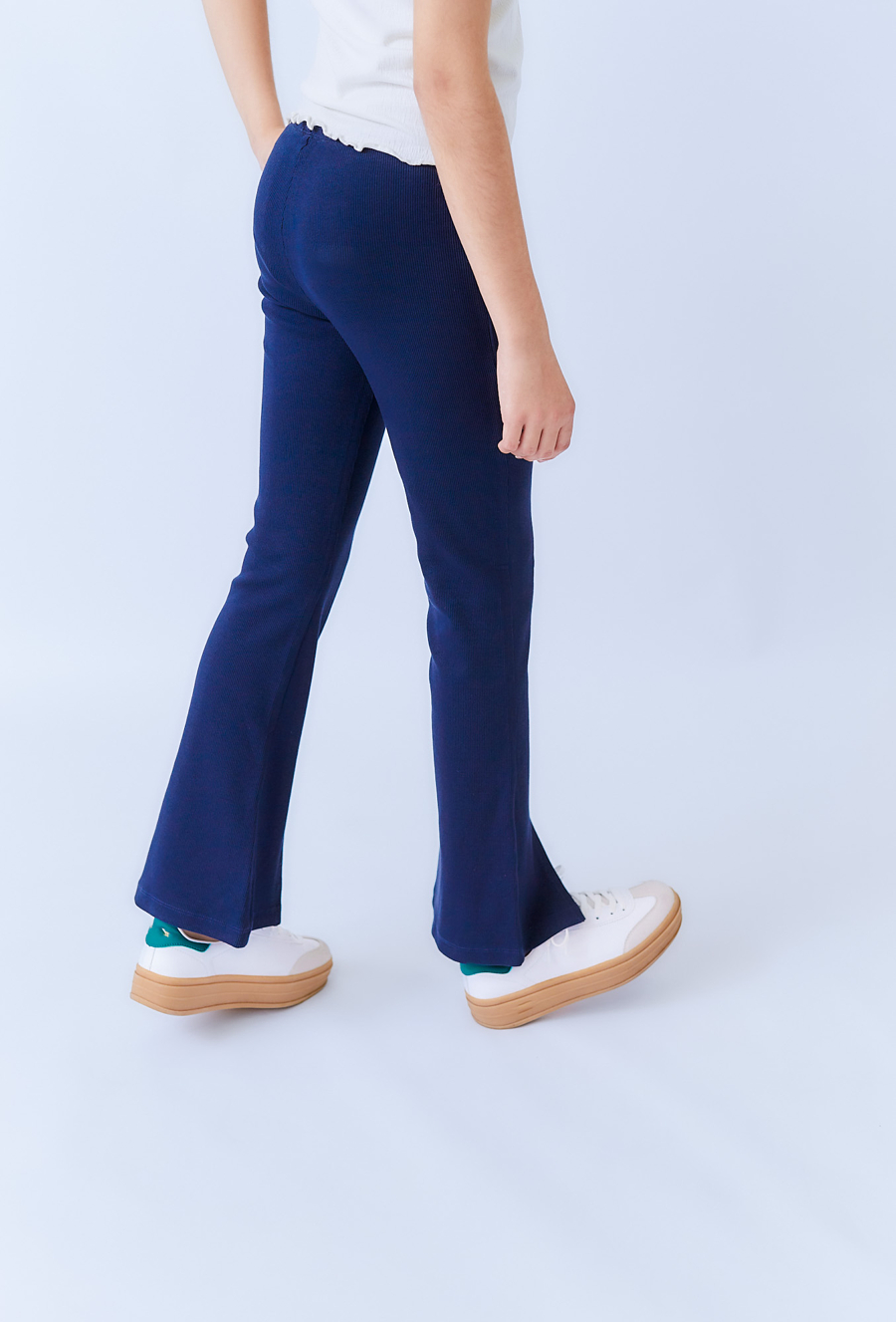 Granatowe legginsy dziewczęce flare z rozcięciami
