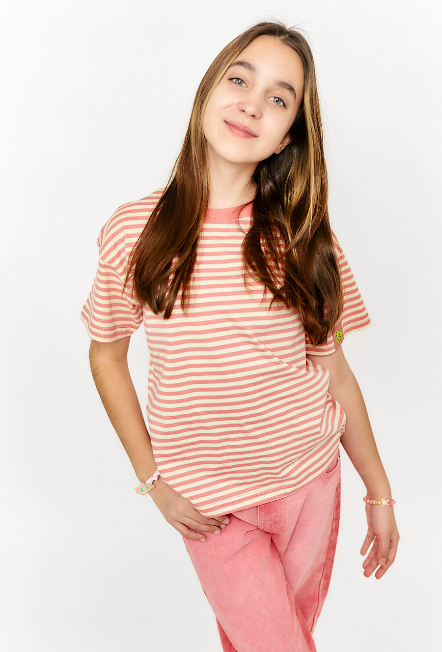 Dziewczęca koszulka w różowe paski