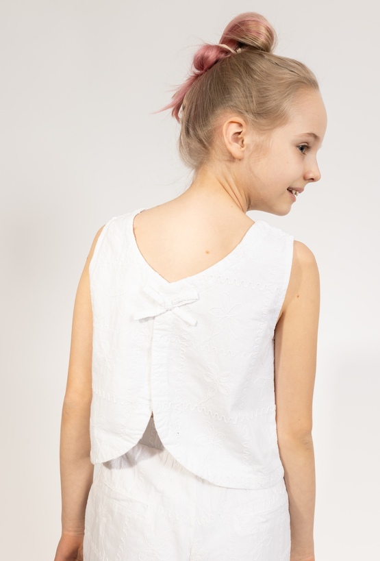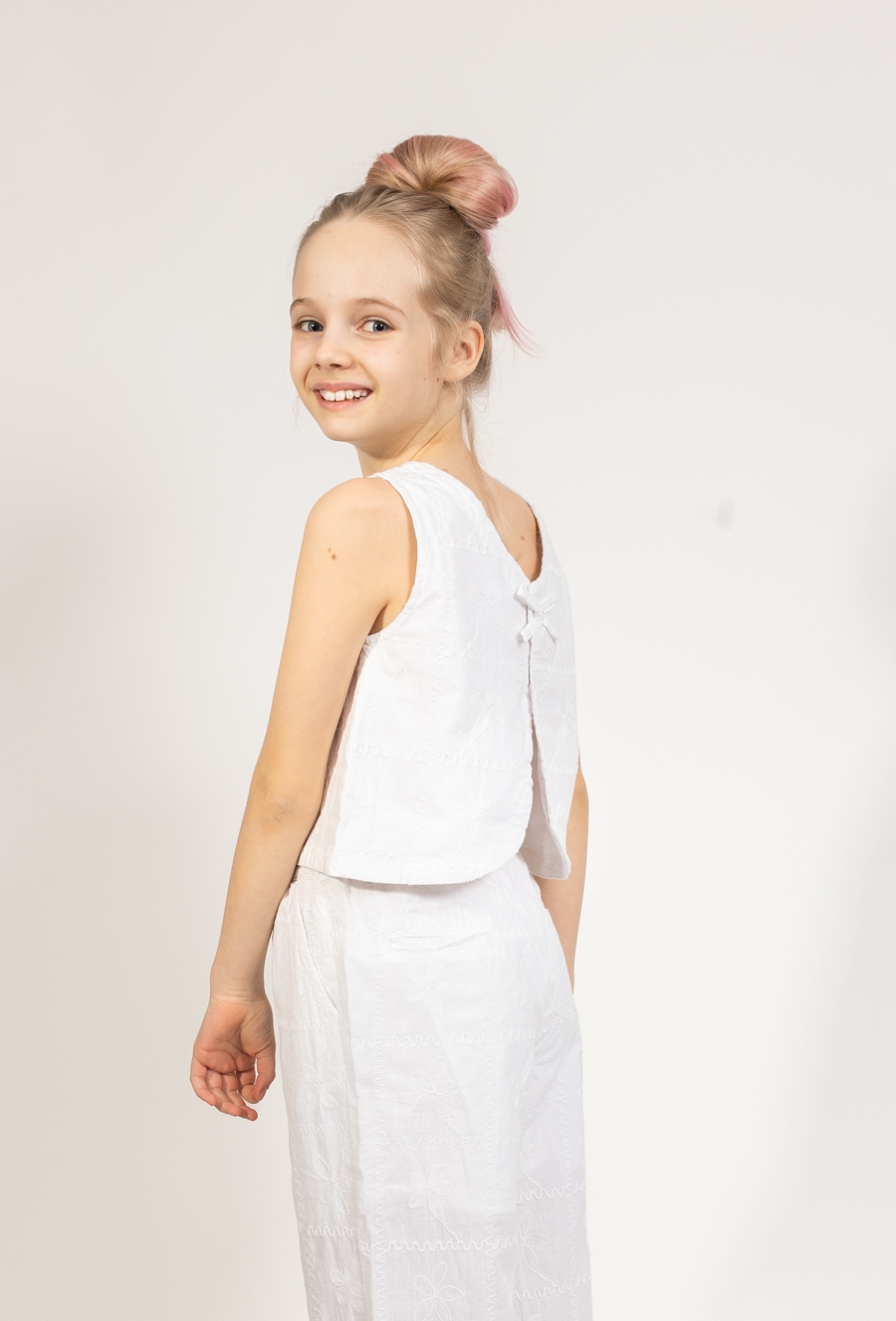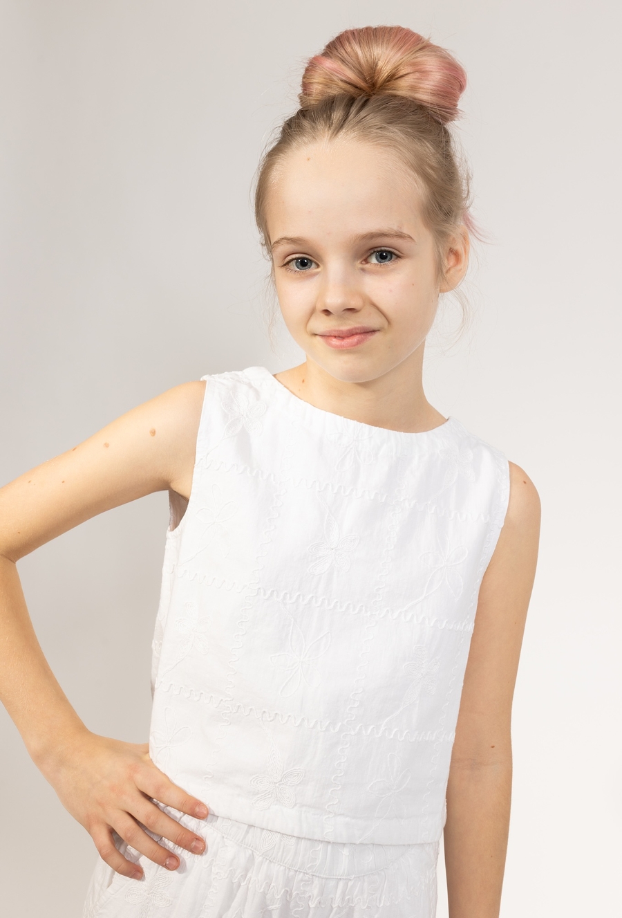 Ta biała bluzka to esencja elegancji i delikatności, stworzona z myślą o wyjątkowych okazjach. Wykonana z tkaniny z wyszywanym wzorem, stanowi idealną bazę do stworzenia uroczystej stylizacji. Ta bluzka świetnie skomponuje się z tiulową spódnicą lub eleganckimi spodniami, tworząc zestaw idealny na rodzinne przyjęcia, akademie czy święta.