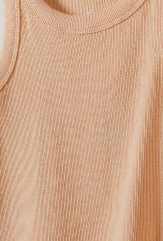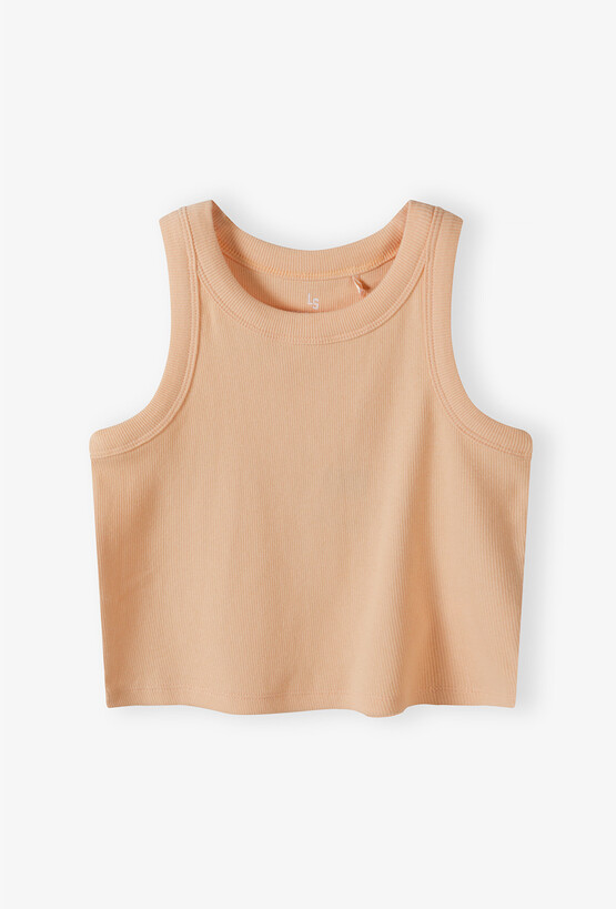 Szukasz bazy, która łączy sportową wygodę z najgorętszymi trendami? Ten brzoskwiniowy crop top to absolutny hit sezonu. Dzięki skróconemu fasonowi i elastycznej strukturze materiału, koszulka ta zapewnia nowoczesny wygląd i maksymalną swobodę ruchów w upalne dni. Pastelowy odcień pomarańczowego pięknie podkreśla wakacyjną opaleniznę i dodaje świeżości każdej stylizacji. Dzianina o wyraźnym prążkowaniu jest niezwykle elastyczna, dzięki czemu top idealnie przylega do ciała, zapewniając komfort i wsparcie podczas każdej aktywności.