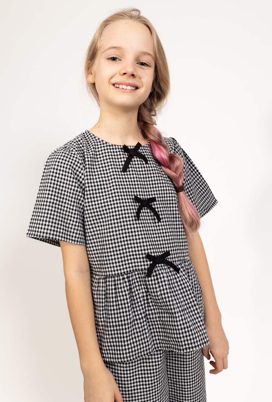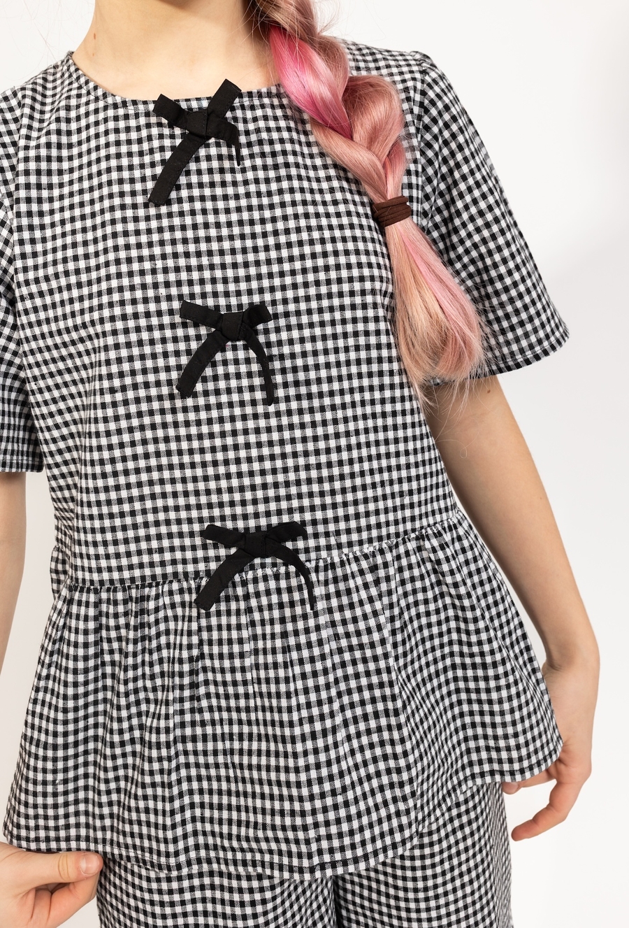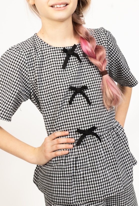 Koszulka dziewczęca w kratkę z kokardkami