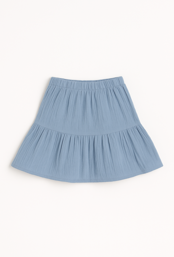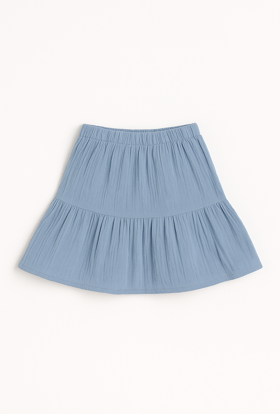 Krótka spódnica w odcieniu błękitu to idealny wybór dla dziewczynki na codzienne i specjalne okazje. Wykonana z lekkiej, przyjemnej w dotyku tkaniny, zapewnia komfort noszenia przez cały dzień. Luźny, lekko rozkloszowany fason z delikatnymi marszczeniami nadaje jej dziewczęcego uroku, a elastyczny pas gwarantuje idealne dopasowanie i swobodę ruchów. Spódnica świetnie sprawdzi się zarówno na co dzień – w zestawie z T-shirtem czy bluzką – jak i podczas rodzinnych uroczystości. To uniwersalny element garderoby, który z łatwością wpasuje się w różne stylizacje.