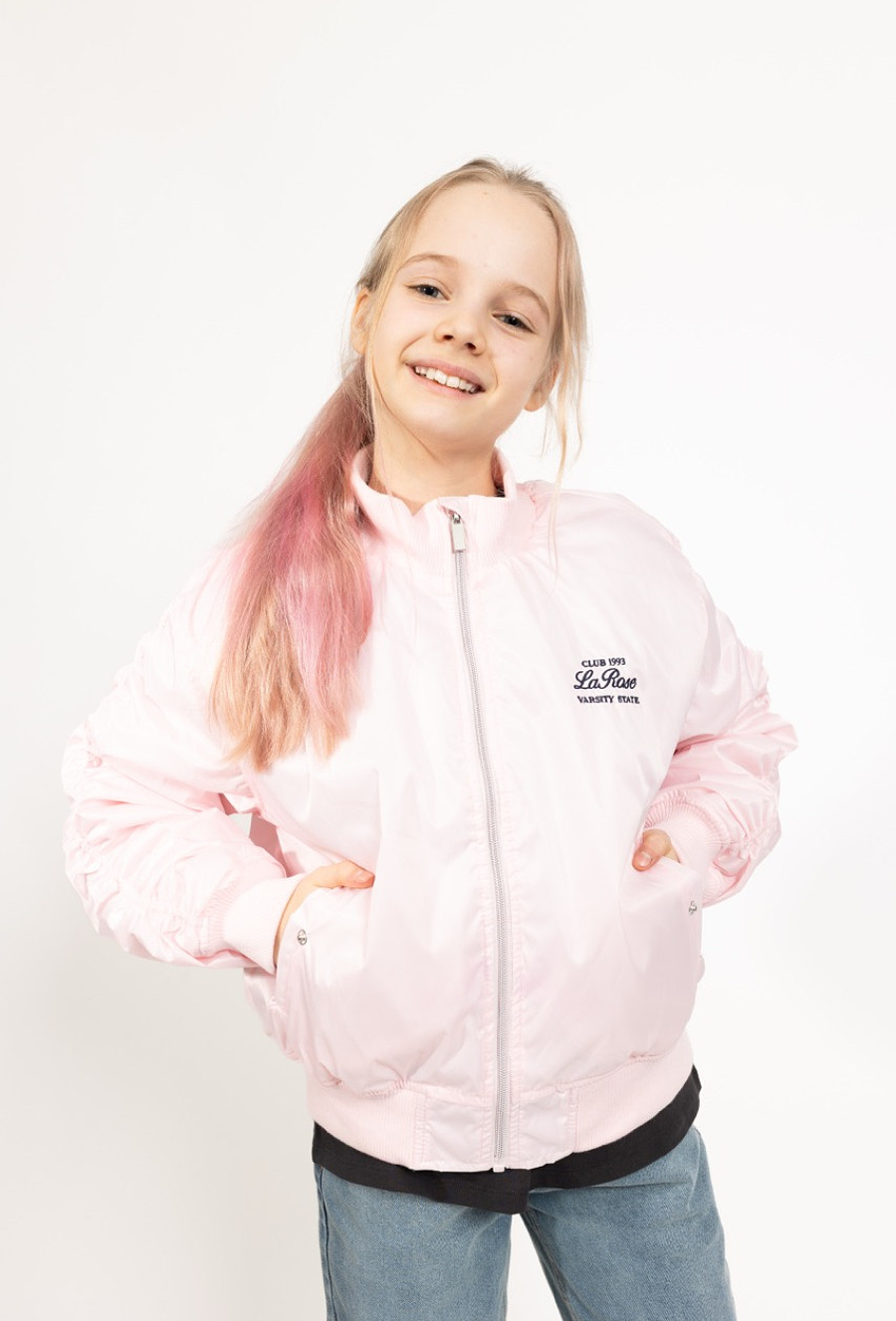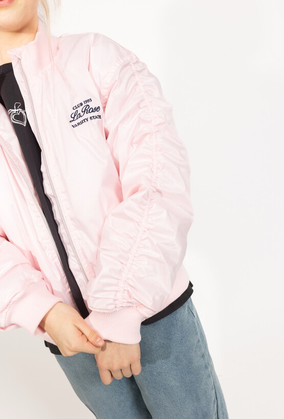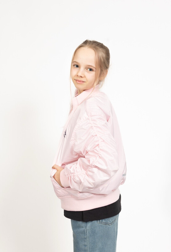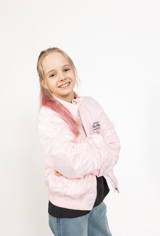 Stylowa i wygodna różowa kurtka przejściowa dla dziewczynki w modnym fasonie bomberki. Idealna na wiosnę i chłodniejsze dni przejściowe – lekka, a jednocześnie przyjemnie otulająca dzięki wypełnieniu z poliestru. Kurtka zapinana na zamek, z praktycznymi kieszeniami oraz ściągaczami przy mankietach i u dołu, które pomagają dopasować ją do sylwetki i chronią przed podmuchami wiatru. Subtelna aplikacja/haft na przodzie dodaje całości sportowego charakteru i świetnie pasuje do jeansów, legginsów czy sukienki.