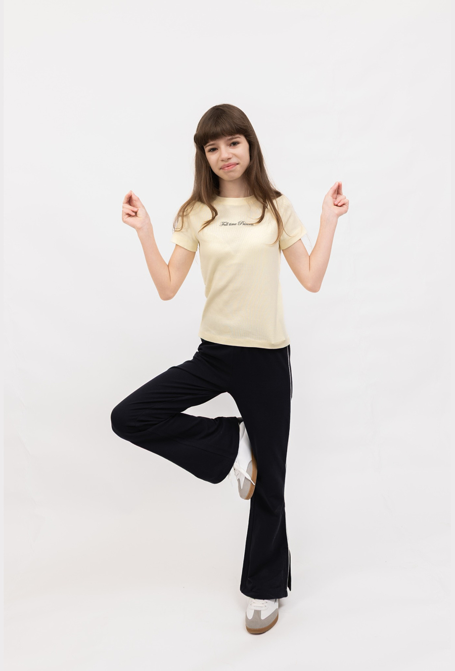 Legginsy dziecięce flare (dzwony) z lamówką i rozcięciami