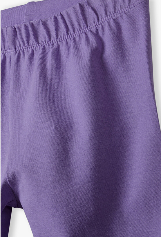 Postaw na absolutny hit sezonu! Te fioletowe legginsy o długości 1/2 (kolarki) to niezastąpiony element garderoby każdej aktywnej dziewczynki. Łączą w sobie sportowy charakter z niezwykle modnym, nasyconym kolorem, zapewniając pełną swobodę ruchów podczas każdej wakacyjnej przygody. Elastyczna, szeroka guma w tunelu zapewnia stabilność i zapobiega zsuwaniu się legginsów podczas biegania, skakania czy jazdy na rowerze, nie uciskając przy tym brzucha. Brak zbędnych nadruków i aplikacji sprawia, że legginsy są niezwykle łatwe w stylizacji. Pasują do długich T-shirtów typu oversize, sportowych topów oraz dresowych bluz.