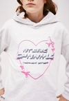Jasnoszara bluza z kapturem łączy wygodę z nowoczesnym designem. Duży, futurystyczny nadruk z metalicznym efektem i różowymi akcentami dodaje jej oryginalnego charakteru. Luźny krój zapewnia swobodę ruchu, a miękki materiał sprawia, że bluza jest idealnym wyborem na co dzień. Świetnie komponuje się zarówno ze spodniami dresowymi, jak i jeansami, tworząc casualowy zestaw na każdą okazję.