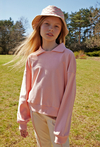 Dziewczęca bluza o swobodnym, oversize’owym kroju w pastelowym różu. Wyróżnia się szerokim kołnierzykiem i obniżoną linią ramion, co nadaje jej luzu i nowoczesnego charakteru. Ściągacze przy rękawach i dole bluzy dbają o komfort noszenia. Miękka dzianina sprawia, że to doskonały wybór na spacery, do szkoły czy relaks w domu.