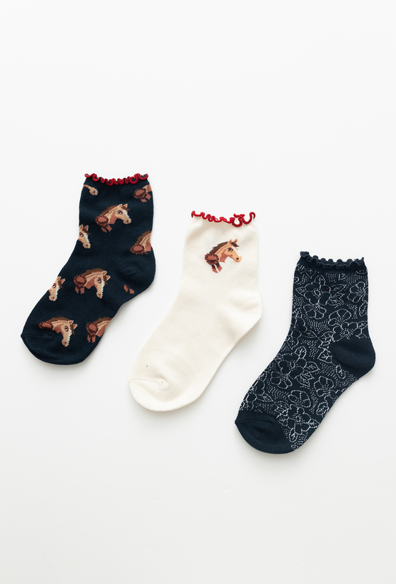 Zestaw skarpet dziewczęcych 3-pak z motywem koników to idealne połączenie wygody i stylu. Wykonane z miękkiej bawełny z dodatkiem poliamidu i elastanu, są elastyczne, przewiewne i przyjazne dla skóry. Dekoracyjne wykończenie dodaje im uroku, a wzór w koniki spodoba się każdej małej miłośniczce zwierząt. Doskonałe do codziennego noszenia, zarówno w domu, jak i do szkoły.