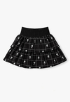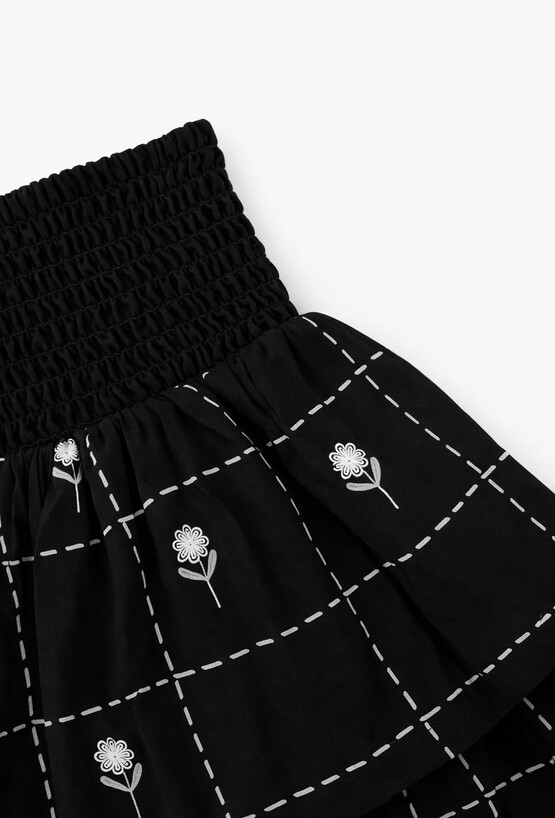 Krótka spódnica, która łączy w sobie dziewczęcy styl i wygodę noszenia. Model wykonany w całości z bawełny, dzięki czemu jest przewiewny i delikatny dla skóry dziecka. Materiał charakteryzuje się subtelnym połyskiem, który dodaje całości elegancji. Spódnica posiada efektowne falbanki, które nadają jej lekkości i ciekawego wyglądu. Całość zdobi nadruk w kratkę z kwiatowymi akcentami. Zastosowanie gumonic w pasie zapewnia optymalne dopasowanie do sylwetki i komfort podczas codziennego użytkowania.