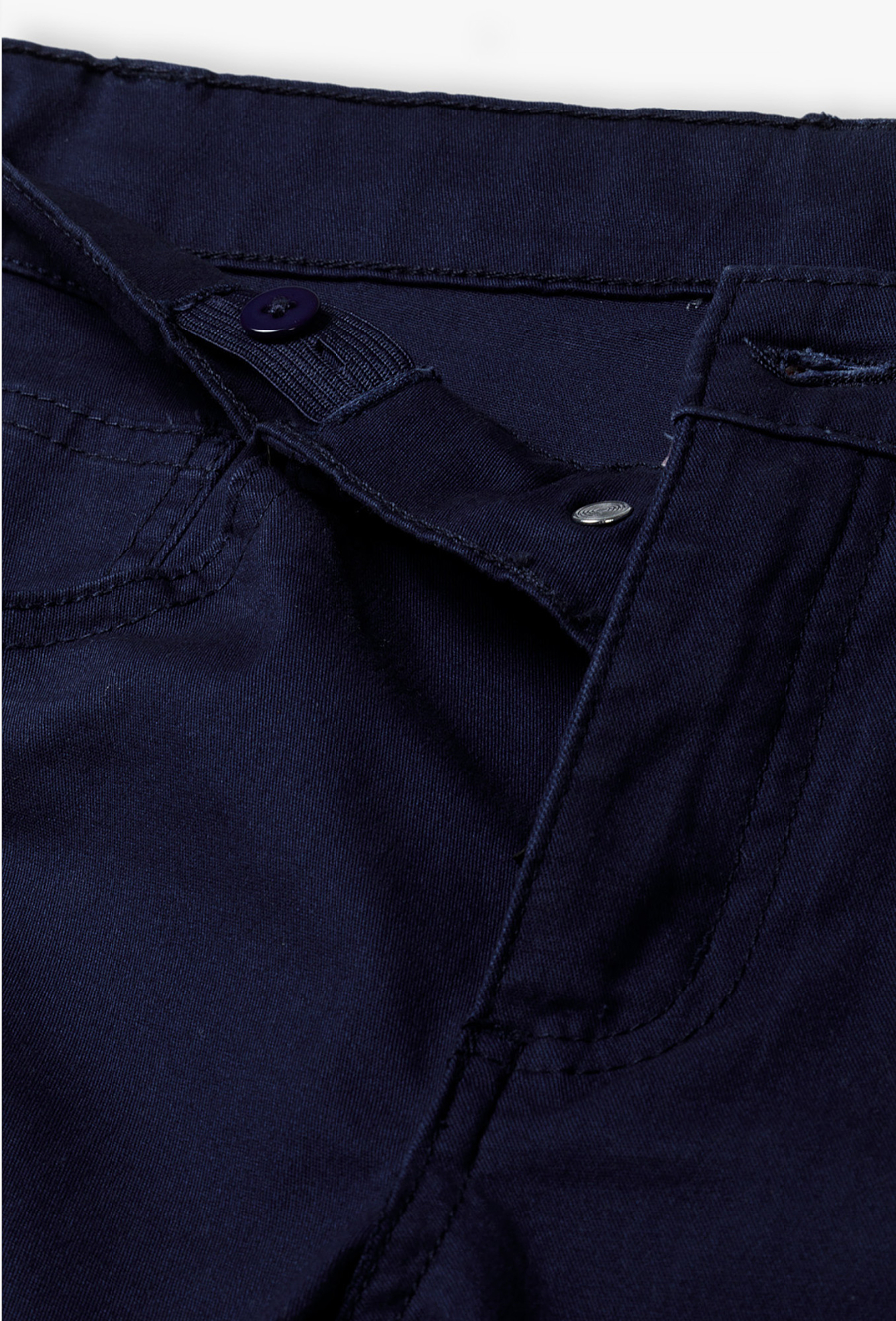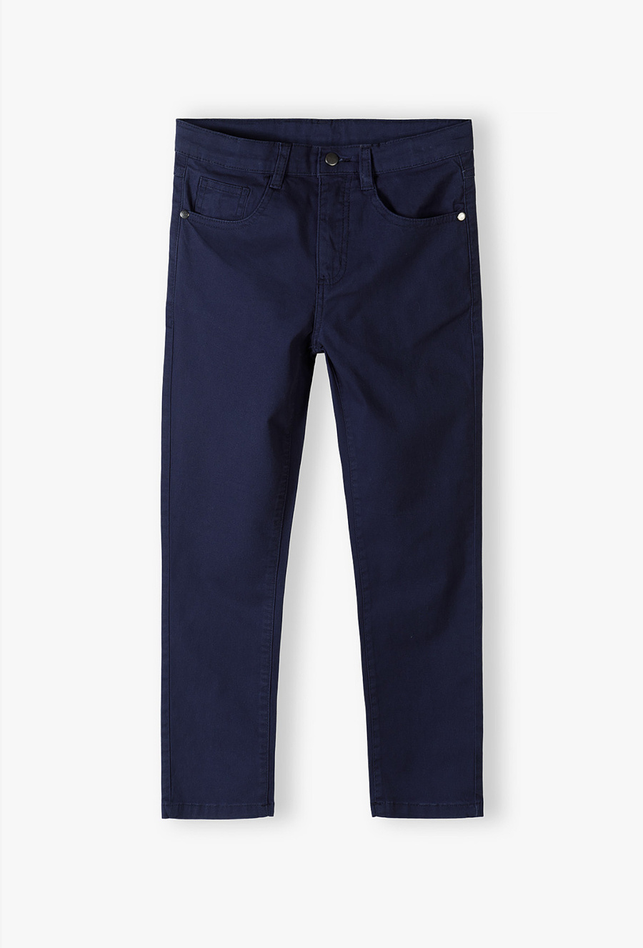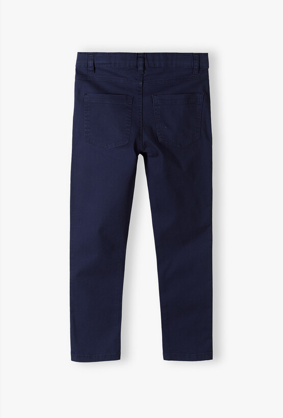 Zadbaj o nienaganny wygląd swojego syna podczas każdej ważnej uroczystości! Te granatowe spodnie typu chinos to absolutny klasyk, który powinien znaleźć się w szafie każdego młodego dżentelmena. Łączą w sobie formalny szyk spodni wizytowych z komfortem noszenia spodni codziennych, co czyni je idealnym wyborem na rozpoczęcie roku szkolnego, egzaminy czy rodzinne przyjęcia. Proste nogawki i klasyczny krój sprawiają, że spodnie prezentują się niezwykle schludnie. To uniwersalna baza, która doskonale współgra zarówno z białą koszulką polo, jak i elegancką koszulą z długim rękawem. Spodnie zapinane są na wygodny guzik i zamek błyskawiczny, co ułatwia ich samodzielne zakładanie.