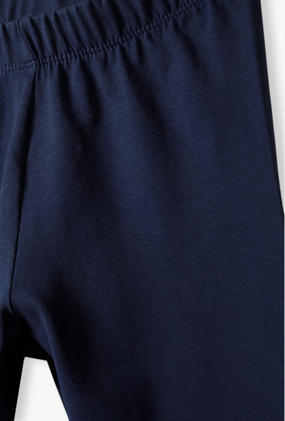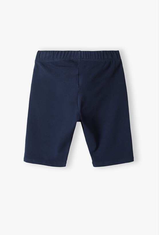 Legginsy kolarki w kolorze głębokiego granatu – sportowa wygoda w uniwersalnym wydaniu. Postaw na absolutny klasyk letniej garderoby! Te granatowe legginsy o długości 1/2 (kolarki) to niezastąpiony element stroju dla każdej aktywnej dziewczynki. Łączą w sobie sportową funkcjonalność z uniwersalnym kolorem, który pasuje do każdej stylizacji – od szkolnego boiska po wakacyjny spacer. Fason typu kolarki (sięgający przed kolano) to optymalny wybór na upalne dni. Chroni uda przed otarciami, a jednocześnie zapewnia doskonałą wentylację i swobodę, której potrzebuje każda nastolatka. Te kolarki to gwarancja wygody, która sprawdzi się w każdej sytuacji wymagającej pełnej swobody ruchów.