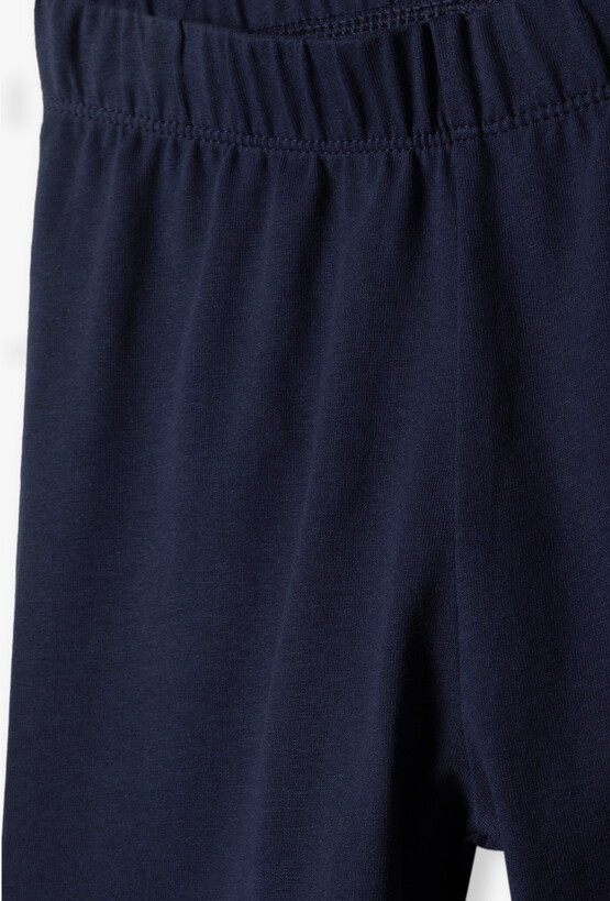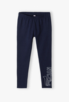 Szukasz uniwersalnej bazy do codziennych stylizacji swojej córki? Te granatowe legginsy to połączenie klasycznego komfortu z modnym, miejskim akcentem. Doskonale sprawdzą się podczas intensywnego dnia w szkole, na zajęciach sportowych czy podczas relaksu w domu. Dół lewej nogawki zdobi biały, linearny nadruk w stylu sportowym. Ten modny detal przełamuje klasyczny wygląd getrów i nadaje im nowoczesnego charakteru. Fason typu legginsy podkreśla sylwetkę i świetnie komponuje się zarówno z krótkimi T-shirtami, jak i bluzami typu oversize czy tunikami.