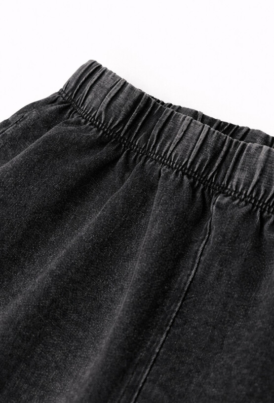 Stylowe i wygodne legginsy flare 51015 to świetna baza codziennych stylizacji. Mają modny, lekko rozszerzany ku dołowi krój oraz efekt sprania, który nadaje im jeansowy charakter. Wykonane z elastycznej dzianiny (95% bawełna, 5% elastan) dobrze dopasowują się do sylwetki i zapewniają swobodę ruchów. Miękka guma w pasie sprawia, że legginsy trzymają się stabilnie i są komfortowe przez cały dzień – do szkoły, na spacer i na zabawę.