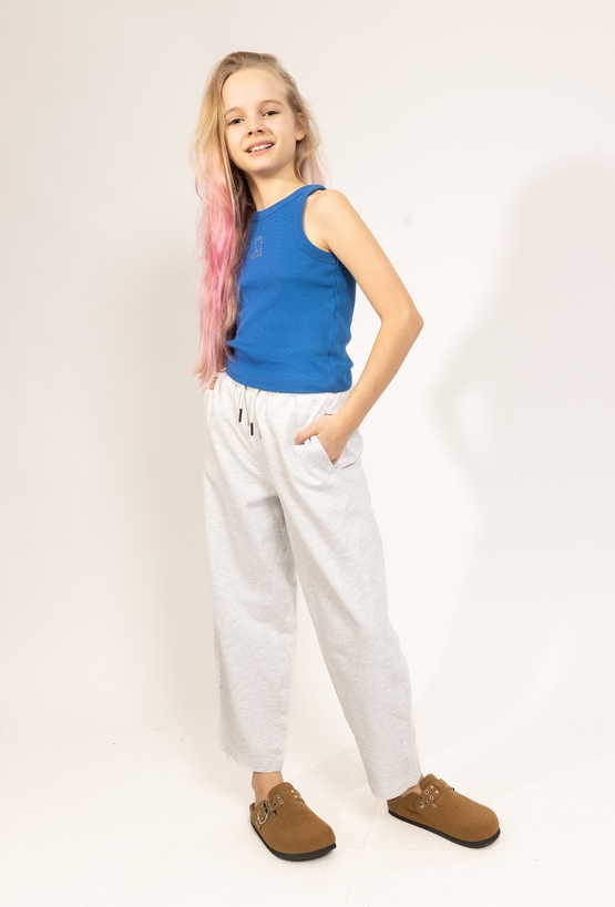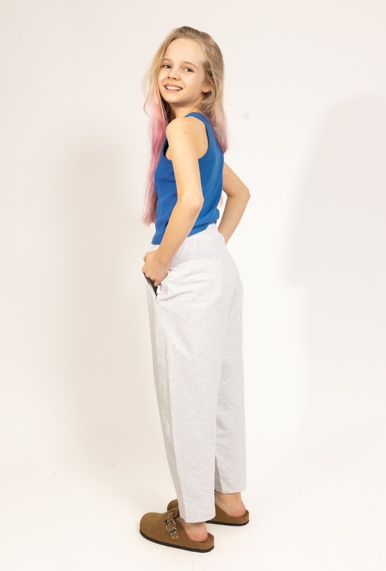 Wygoda na pierwszym miejscu! Te szare spodnie dresowe o kroju barrel to świetna opcja na co dzień – do szkoły, przedszkola, na spacer i w podróży. Luźniejszy fason zapewnia swobodę ruchów, a przyjemna w dotyku dzianina z przewagą bawełny sprawia, że spodnie są komfortowe przez cały dzień. Model ma praktyczne kieszenie oraz ściągacz w pasie ze sznurkiem, dzięki czemu łatwo dopasować go do sylwetki dziecka. Klasyczny, melanżowy odcień szarości pasuje do wszystkiego – od T-shirtów po bluzy.