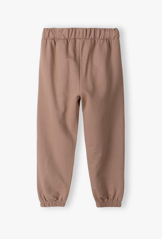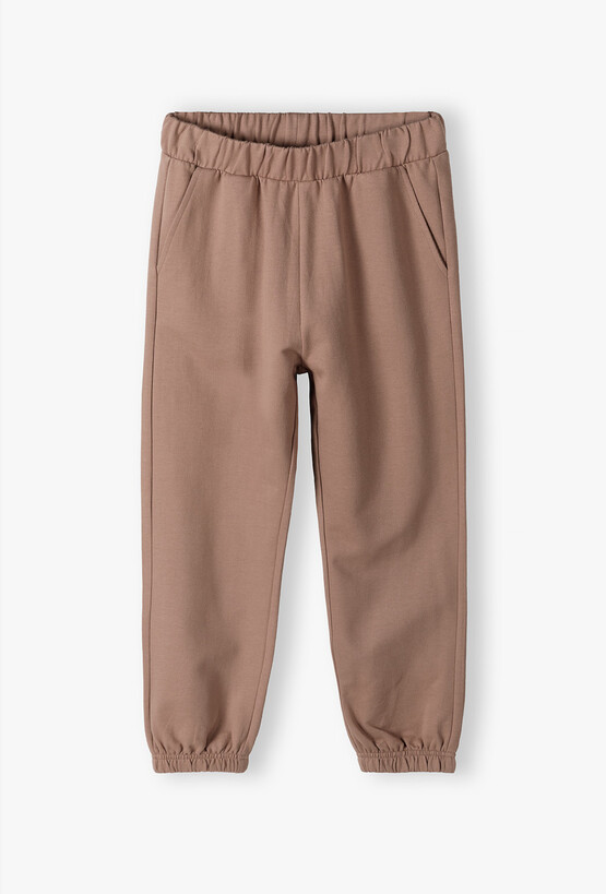 Postaw na bazę, która łączy w sobie sportowy luz z modną, ziemistą kolorystyką. Te brązowe spodnie dresowe to idealny wybór dla dziewcząt, które cenią sobie komfort podczas długiego dnia w szkole, na treningu czy podczas relaksu w domu. Klasyczny krój typu jogger zapewnia nowoczesny wygląd i pełną swobodę ruchów. Luźny krój w górnej części oraz nogawki zakończone elastycznymi ściągaczami sprawiają, że spodnie idealnie układają się na sylwetce i nie przeszkadzają podczas aktywności fizycznej. Dwie wpuszczane kieszenie boczne to miejsce na telefon, klucze lub inne niezbędne drobiazgi, które Twoja córka chce mieć zawsze pod ręką.
