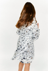 Elegancka sukienka z długim rękawem w szaro-srebrnym odcieniu to doskonały wybór na wyjątkowe okazje. Ozdobiona subtelnymi cekinami, które dodają jej blasku, przyciąga uwagę i podkreśla dziewczęcy styl. Miękki materiał zapewnia wygodę noszenia, a klasyczny krój łączy komfort z szykiem. Idealna na uroczystości, przyjęcia i rodzinne spotkania!