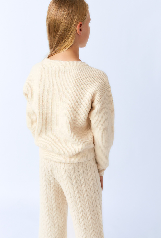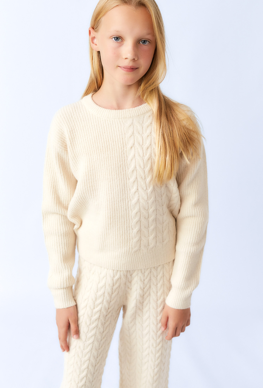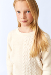 Sweter dziewczęcy ecru z dekoracyjnym splotem