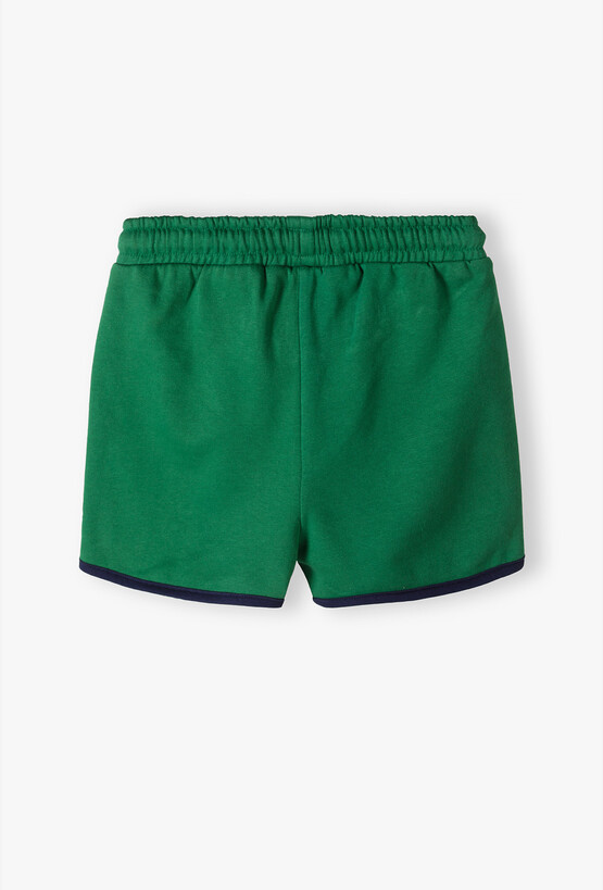 Postaw na modny powrót do klasyki! Te zielone szorty to idealne połączenie sportowego luzu z estetyką retro. Dzięki kontrastowym wykończeniom i przemyślanemu krojowi, spodenki te staną się ulubionym elementem garderoby każdej aktywnej dziewczynki, zarówno podczas lekcji WF-u, jak i wakacyjnych przygód. Wykończenie brzegów nogawek oraz boczne paski w kolorze ciemnego granatu nadają szortom charakterystyczny, oldschoolowy wygląd. To detal, który sprawia, że spodenki prezentują się wyjątkowo dynamicznie. Szeroka guma w pasie zapewnia stabilność, a troczek pozwala na precyzyjne dopasowanie spodenek do sylwetki, zapobiegając ich przesuwaniu się podczas biegania czy skakania.