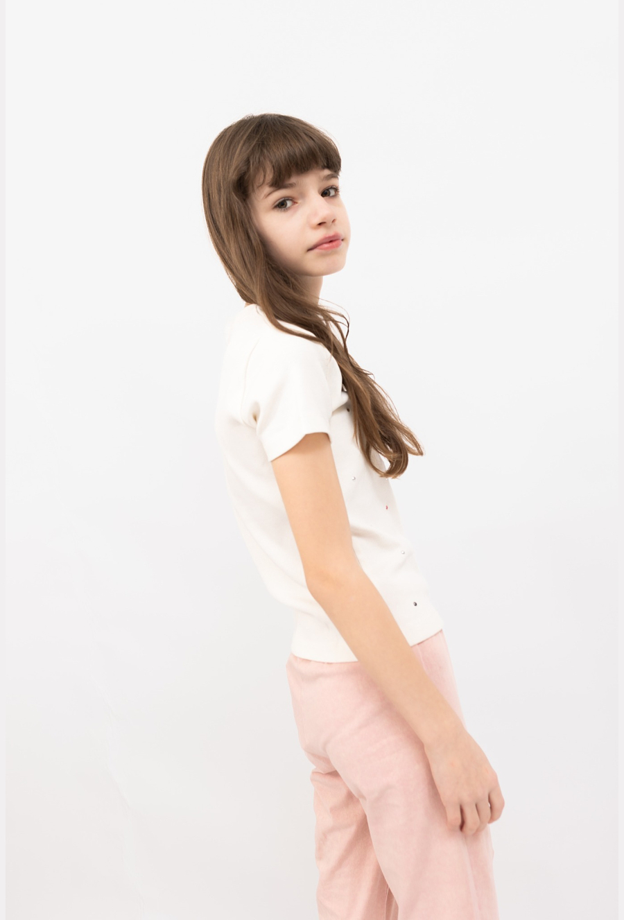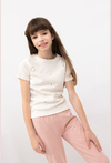 T-shirt dziecięcy prążkowany z ozdobnymi dżetami