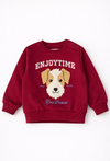 Miękka i wygodna czerwona bluza dziecięca z dużą naszywką pieska to świetny wybór dla malucha na chłodniejsze dni. Wykonana w 100% z wysokiej jakości bawełny, zapewnia komfort noszenia przez cały dzień. Klasyczny, nierozpinany krój ze ściągaczami przy rękawach i na dole bluzy zapewnia dobre dopasowanie i ciepło. Dekoracyjna aplikacja w kształcie pieska i z napisem sprawia, że bluza zachwyci każdego małego fana zwierzaków. Idealna do przedszkola, na spacer czy zabawę. Bluza świetnie komponuje się z jeansami, legginsami i spodniami dresowymi.