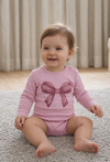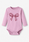 Miękkie i wygodne body niemowlęce z długim rękawem, ozdobione uroczym nadrukiem kokardki. Delikatny materiał dba o komfort w ciągu dnia, a praktyczne zapięcie ułatwia przebieranie malucha. Uniwersalny kolor i fason sprawdzi się jako baza codziennych stylizacji, zapewniając wygodę i swobodę ruchów.