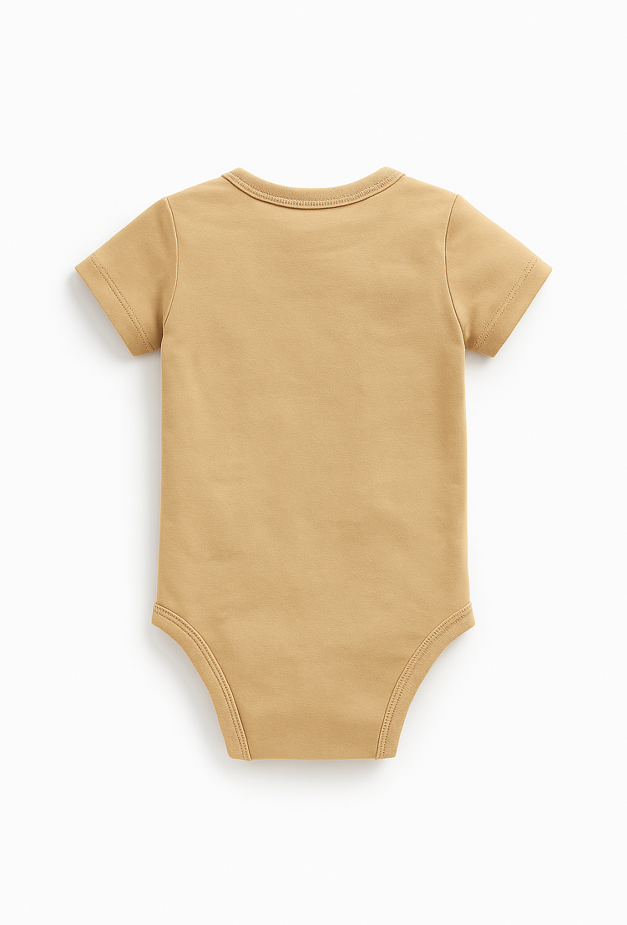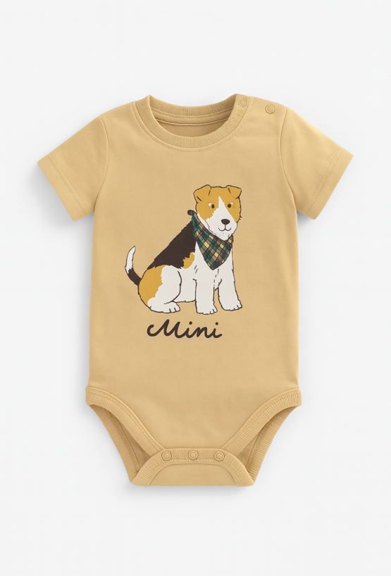 Beżowe body niemowlęce z nadrukiem pieska, krótki rękaw